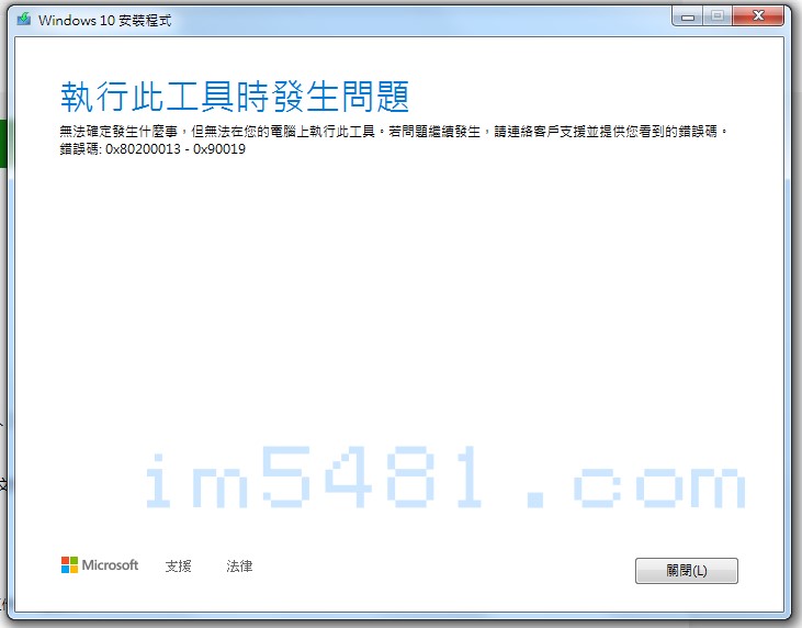 執行Windows 10 安裝程式時,一直出現 執行此工具時發生問題,錯誤碼: 0x80200013 – 0x90019,然後下載進度一直卡在0%。